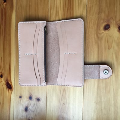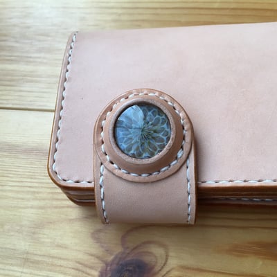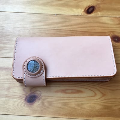 ガラスをボタン部分に使いました。それ以外はシンプルに仕上げた長財布です。